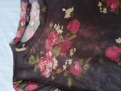 Blusa con flores. Es de tela suave, transparente, con flores.Se puede usar sola o con una blusa básica, debajo.