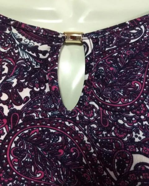 Blusa con hombros descubiertos. Bonita blusa manga corta y hombros descubiertos, y aplicación en el escote, tela muy suave, color morado con blanco, sin detalle.