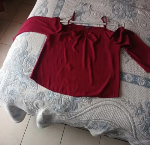 Blusa con hombros descubiertos. Hermosa blusa con hombros descubiertos, tirante y manga, escote delicado en v, queda espectacular