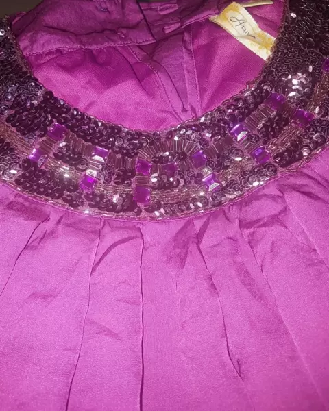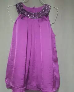 Blusa con lentejuelas. Blusa color morado. Con aplicaciones en lentejuela. Talla grande. De axila a axila mide 52 cm