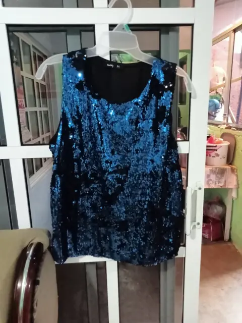Blusa con lentejuelas. Blusa en color negro con lentejuelas en color azul, cambia a negro.Talla Grande