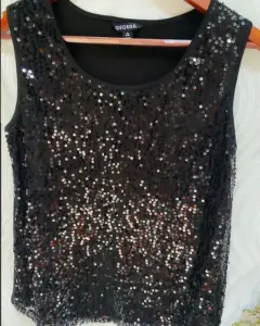 Blusa con lentejuelas brillantes. Blusa con lentejuelas brillantes en color negro cuello redondoMarca: GEORGETalla: M