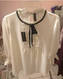 Blusa con listón. Blusa blanca con escote redondo con listonesMaga largaTalla XL