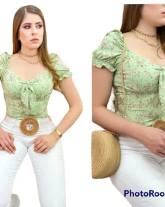 Blusa Con Manga Corta Color Verde. Body verde agua con manga corta, la tela es super suave tiene un escote enfrente pero con el moño casi no se nota
