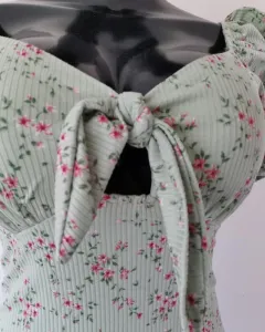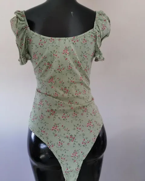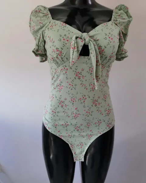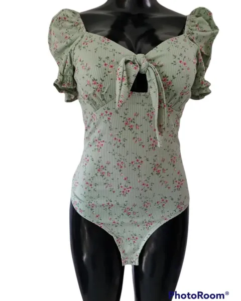 Body verde agua con manga corta, la tela es super suave tiene un escote enfrente pero con el moño casi no se nota