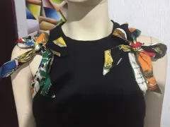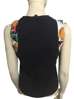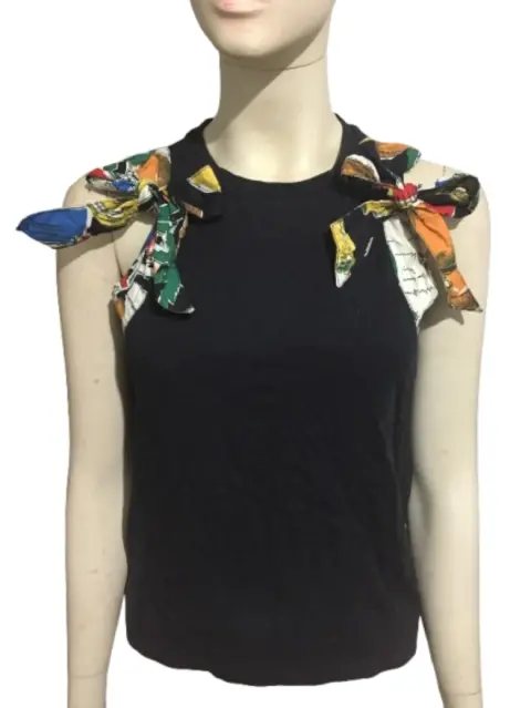 Bonita blusa en color negroncon moños estampados sin mangas para un look casual