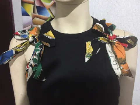 Blusa con moños estampados. Bonita blusa en color negroncon moños estampados sin mangas para un look casual