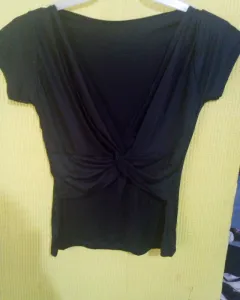 Blusa con nudo. Blusas con corte en V y nudo enfrente , mismo modelo diferente color una es negra y la otra color vino hermosas blusas ❤️