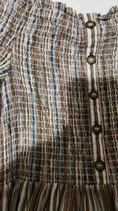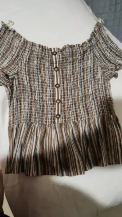 Hermosa blusa con olan, tela tipo resorte, se amolda muy bonita, se ve padrísimo con pantalones, dice talla 16 pero vine siendo una talla ch