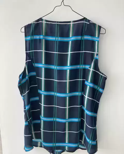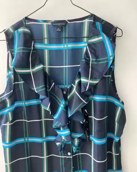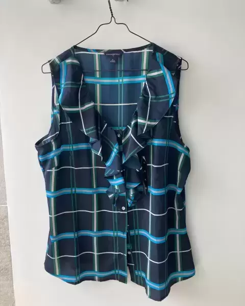 Blusa con olan sin mangas. Blusa sin mangas con olan en el cuello, nueva fresca para esta temporada