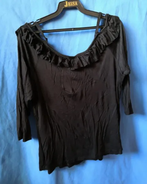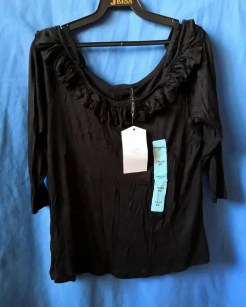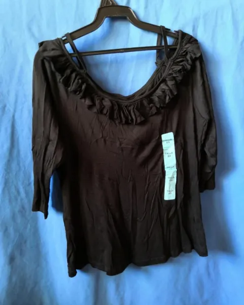 Blusa con olanes. Nueva con etiqueta, Marca Kafe collection, talla EG. La tela bien algo delgada