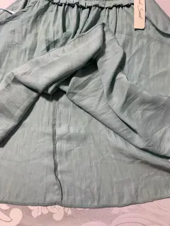 Blusa con olanes en el pecho. Blusa sin mangas, tela ligera, cuello alto con pequeños olanes. Corte en A.Medidas/ busto: 56 cm, cintura: 66 cm, largo: 65 cm.
