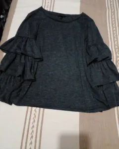 Blusa con olanes en las mangas. Blusa padrisima color gris con olas enblas mangas