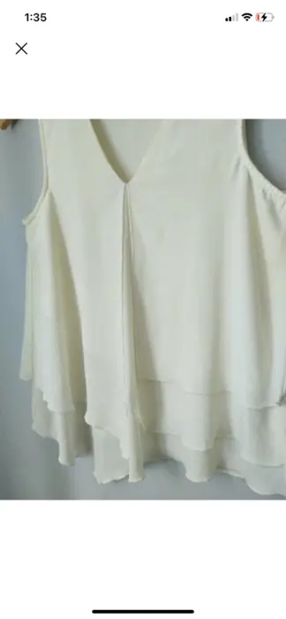 Elige 3 prendas MARCADAS al 3x1 de mi clóset, Y PAGA SOLO UNA.✨Blusa color hueso con olanes, termina en pico.Medidas aproximadas:Pecho 82 cmLargo 67 cm