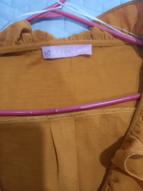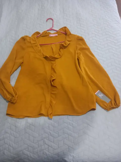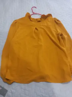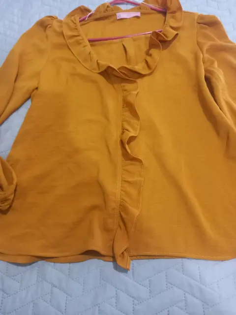 Hermosa blusa con olanes y manga larga color mostaza, bellos olanes delgados en escote, caida super fluida de buena calidad talla 32 mx mide de axila a axila 55cm largo desde hombro 61cm