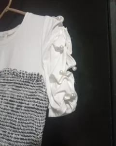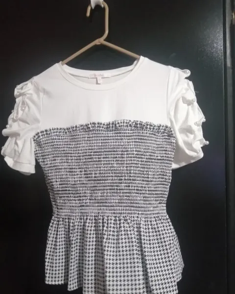 Blusa con perlas en mangas. Blusa con perlas en las mangas , simula arriba un strapple de cuadros tiene elástico