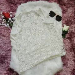 Espalda con detalle de tejido crochet.Fresca. Muy bonita.Con olancitos a los costados🔸️Largo: 56 cm🔸️Ancho: 40 cm