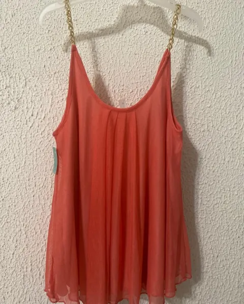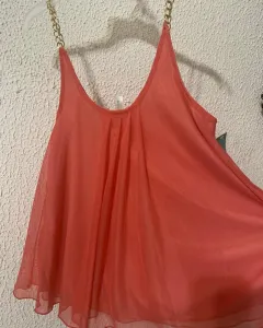 Bonita blusa olgada y vaporosa con tirantes de cadena dorada