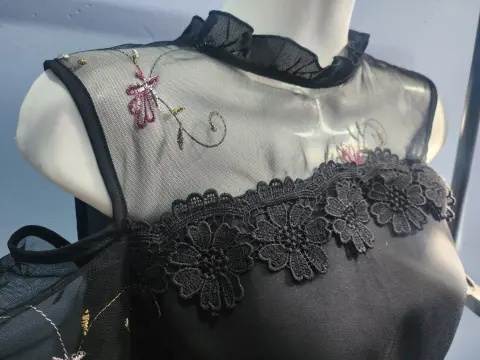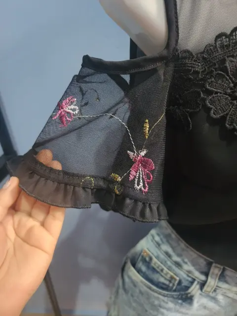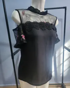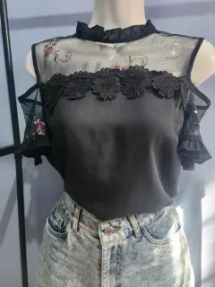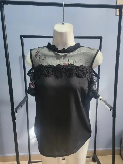 Hermosa blusa elegante con transparencia bordada con flores. Artículo totalmente nuevo, sin usar debido a un error en la talla.