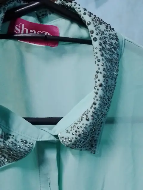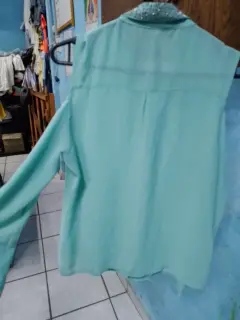 Blusa verde co transparencias color verde talla mediana de dama no estira