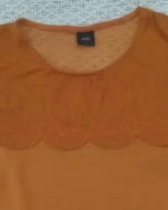 Blusa color naranja ocre con escote y mangas transparentes con hermosos bordados florales.