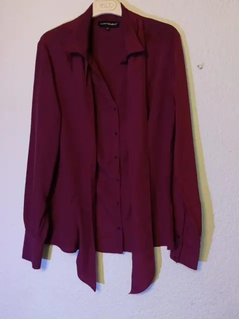 Blusa Contempo. Blusa vino, manga larga, talla 32, busto 106Largo 66Tela poliéster