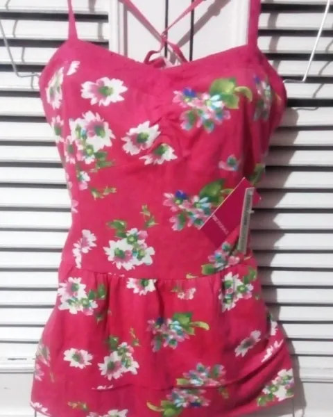 Blusa coqueta estampada rosa EG. Blusa muy coqueta, floreada rosa, blanco, verde con tirantes ajustados, EG,