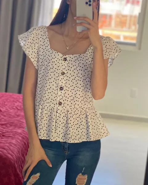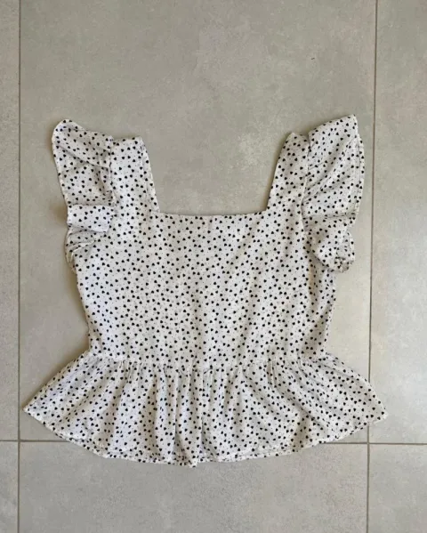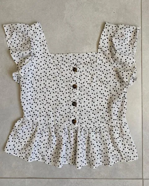 Blusa corazones. Blusa blanca de corazones negros. Medidas: axila a axila 44 cm, largo 57 cm