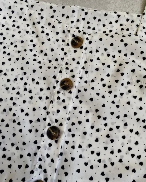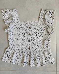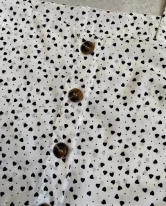Blusa blanca de corazones negros. Medidas: axila a axila 44 cm, largo 57 cm