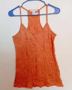 Blusa corrugada de tirantes con gliters. Blusa de resaque con tirantes. Color naranja con gliters dorados. Es de tela strech corrugada, estira bastante. Es de tela muy suave y brilla muy bonito. Queda a talla grande y extragrande.