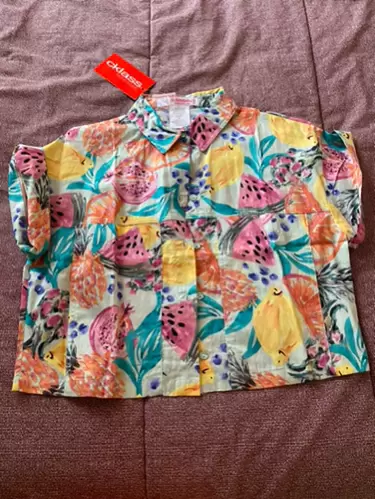 Blusa corta con estampado. Es una blusa corta estampada, manga corta