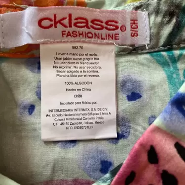 Es una blusa corta estampada, manga corta