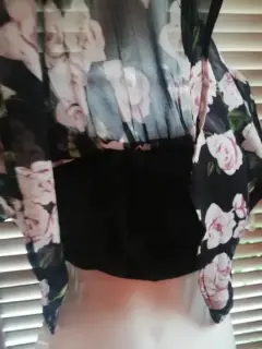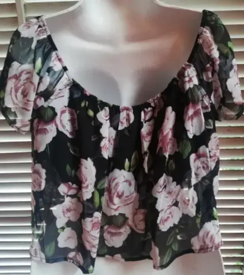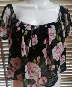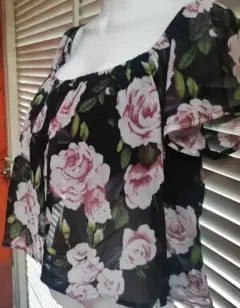 Bonita blusa juvenil, corta floreada color negro con mangas al hombro super coqueta!!! Es talla M nueva con etiqueta marca Lucy Paris.