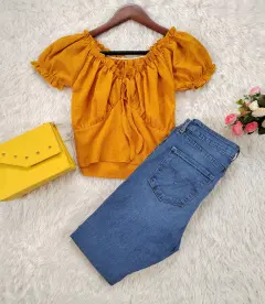 Blusa Corta Mostaza. Blusa cortaCorte campesinoTela delgada y frescaNueva sin detalles queda bien para talla Ch y M