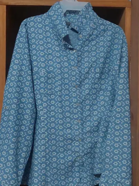 Talla XL, color azul tipo country con estampado de flores blancas. NUEVA: Sin etiqueta.