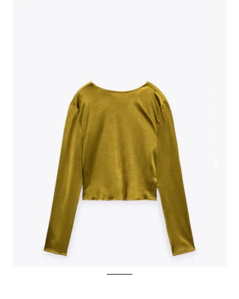 Blusa crop estilo satin drapeada. Blusa corta manga larga Estilo satin y drapeadaUn solo uso Color dorado