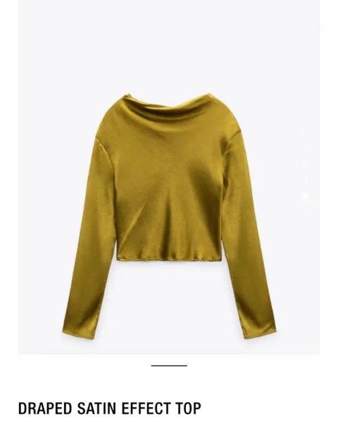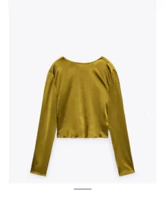 Blusa corta manga larga Estilo satin y drapeadaUn solo uso Color dorado