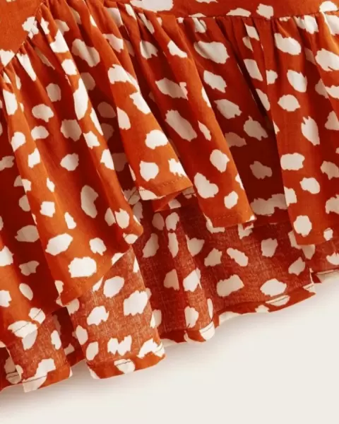 Tela ligera, ideal para el verano, corta de enfrente y de atrás llega a la cintura.