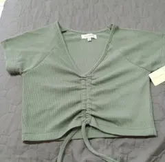 Blusa crop top. Hermoso crop top ajustable de tela stretch color verde súper ligero totalmente nuevo