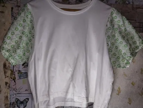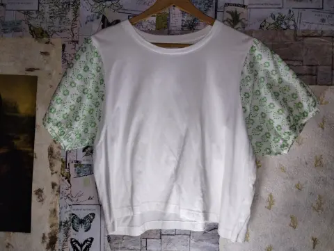 Crop top C&A blanca de algodón con mangas bordadas, una sola puesta talla XL