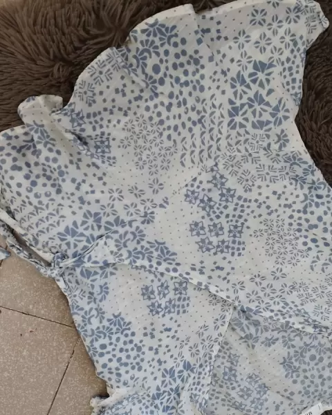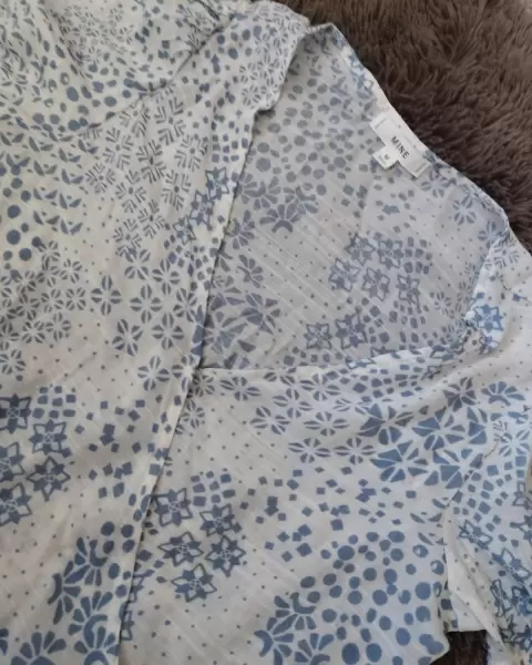 Hermosa blusa , de escote bonito , tiene una cruzada muy bonita , es de tela muy fresca pero muy fornal , talla M es totalmente nueva
