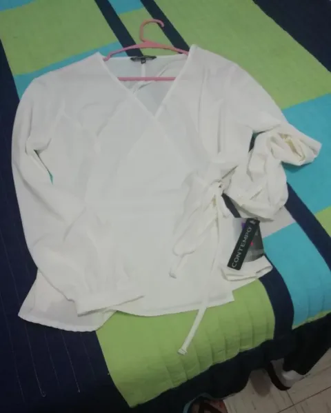Blusa cruzada Contempo. Blusa formal manga larga suavecita cruzada color blanco