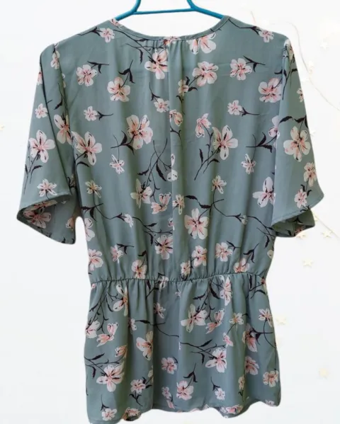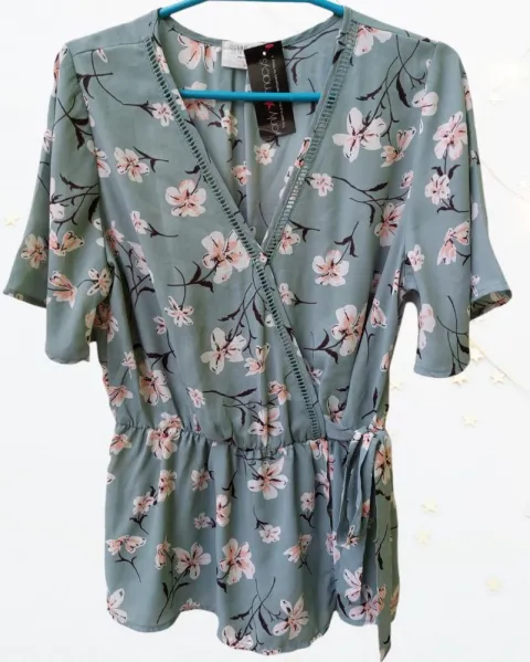 Bonita blusa cruzada,cuenta con cinta ajustable y resorte en la parte de atra,da muy buena forma al cuerpo esta hermosa la blusa,talla L.