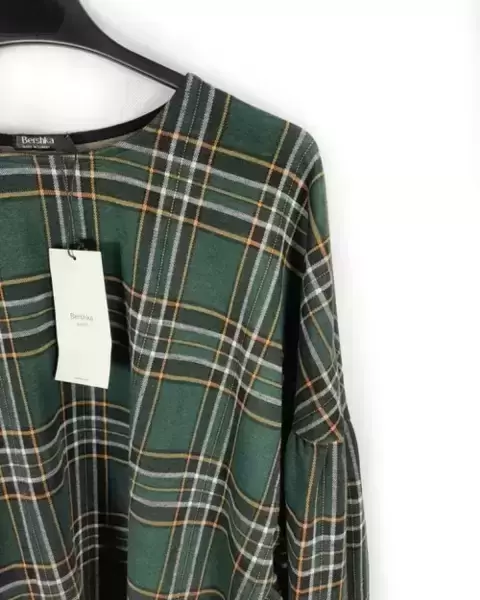 Blusa cuadros verdes Bershka. Hermosa blusa de cuadros verde, con mangas abombadas, tela muy cómoda. Te cubre perfecto pero no está demasiado caliente, puede usarse en esta temporada por la nochesita.
