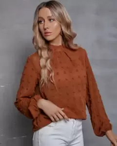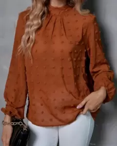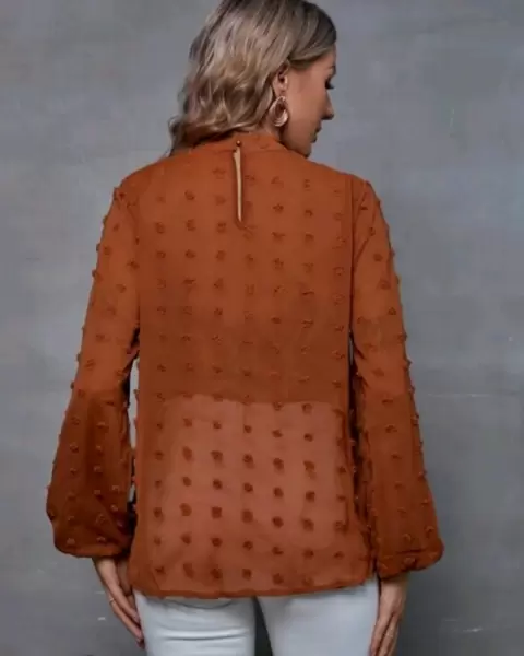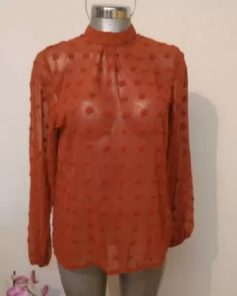 Bonita blusa color ladrillo talla mediana manga larga cuello alto