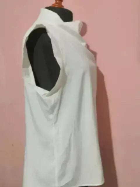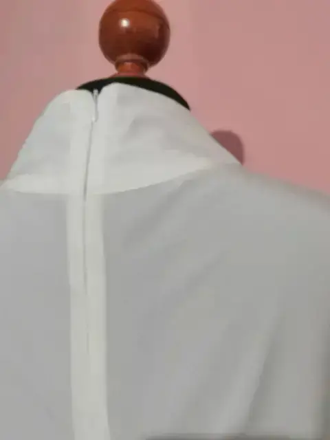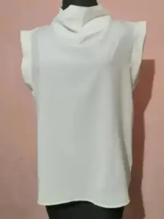 Blusa cuello alto color blanco. Blusa con mangas tipo musculoso da entre talla 32-34 nueva, tela ligera es mezcla entre algodón y poliéster ajusta mediante el cierre trasero
