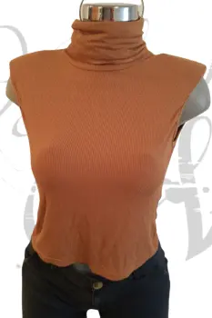 Blusa cuello alto con hombreras. Hermosa blusa, de licra con algodón sin mangas de cuello alto