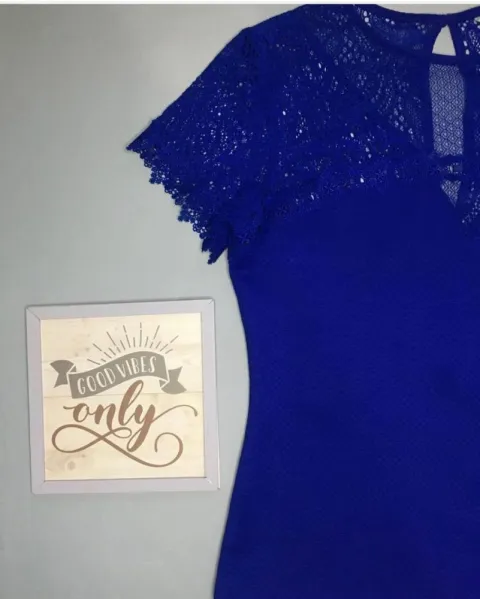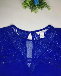 Blusita con encaje en hombro en hermoso azul rey, talla mediana.