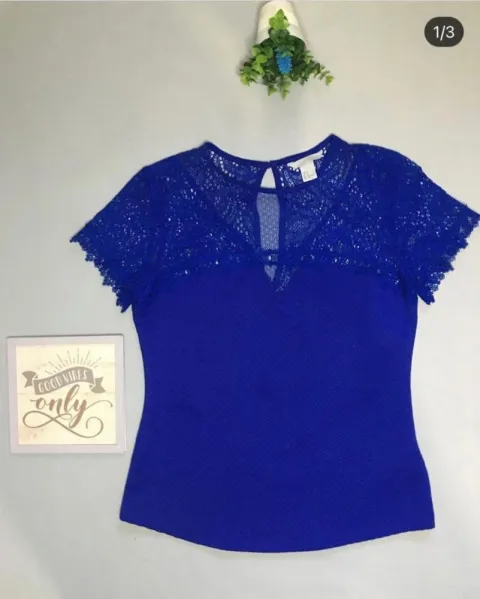 Blusa cuello de encaje 💙. Blusita con encaje en hombro en hermoso azul rey, talla mediana.