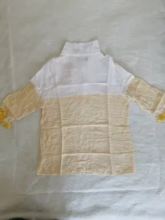 Blusa fresca, Bitono, cuello en V con botones, Manga altura tres cuartos